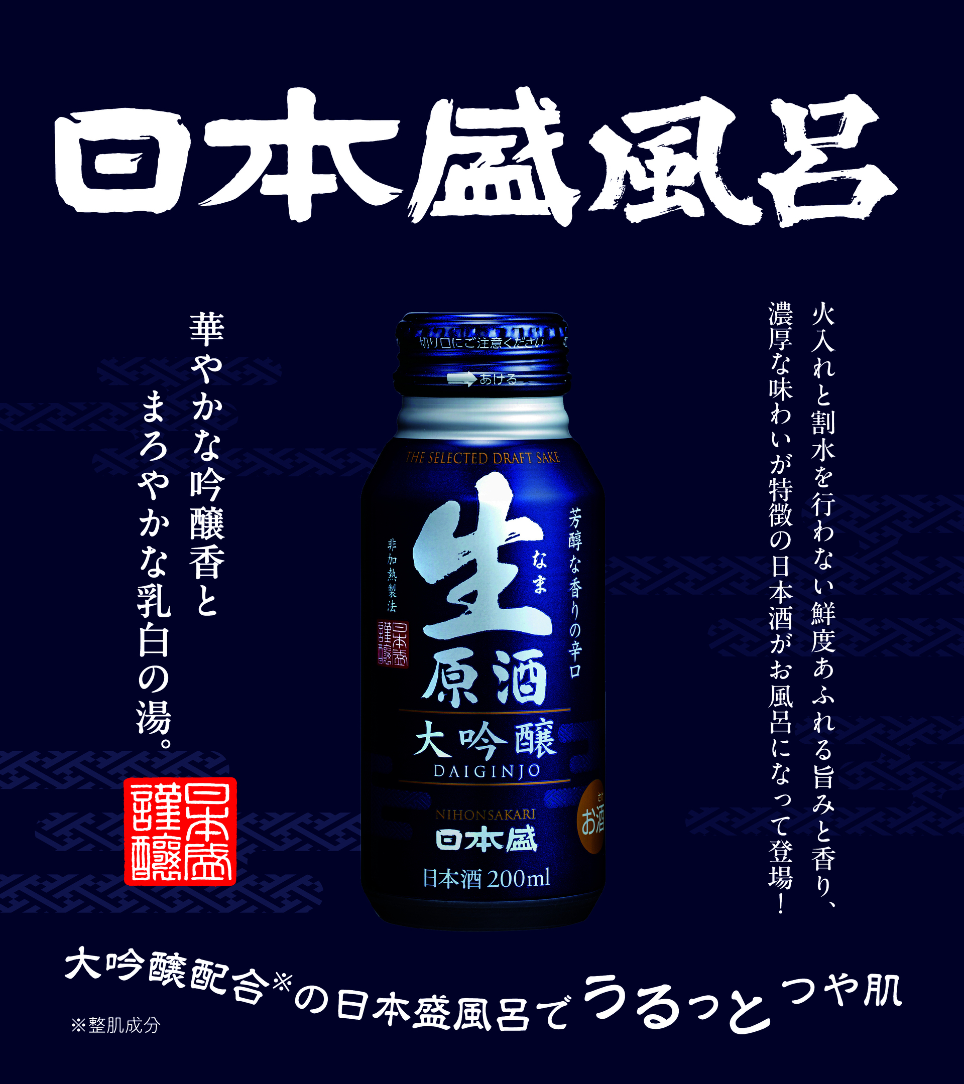 日本盛の「生原酒ボトル缶 大吟醸」とコラボしたお風呂が期間限定で登場いたします!