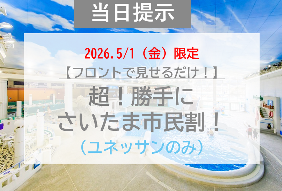 当日、さいたま市民のお客様はユネッサン(水着エリア)がお得に!